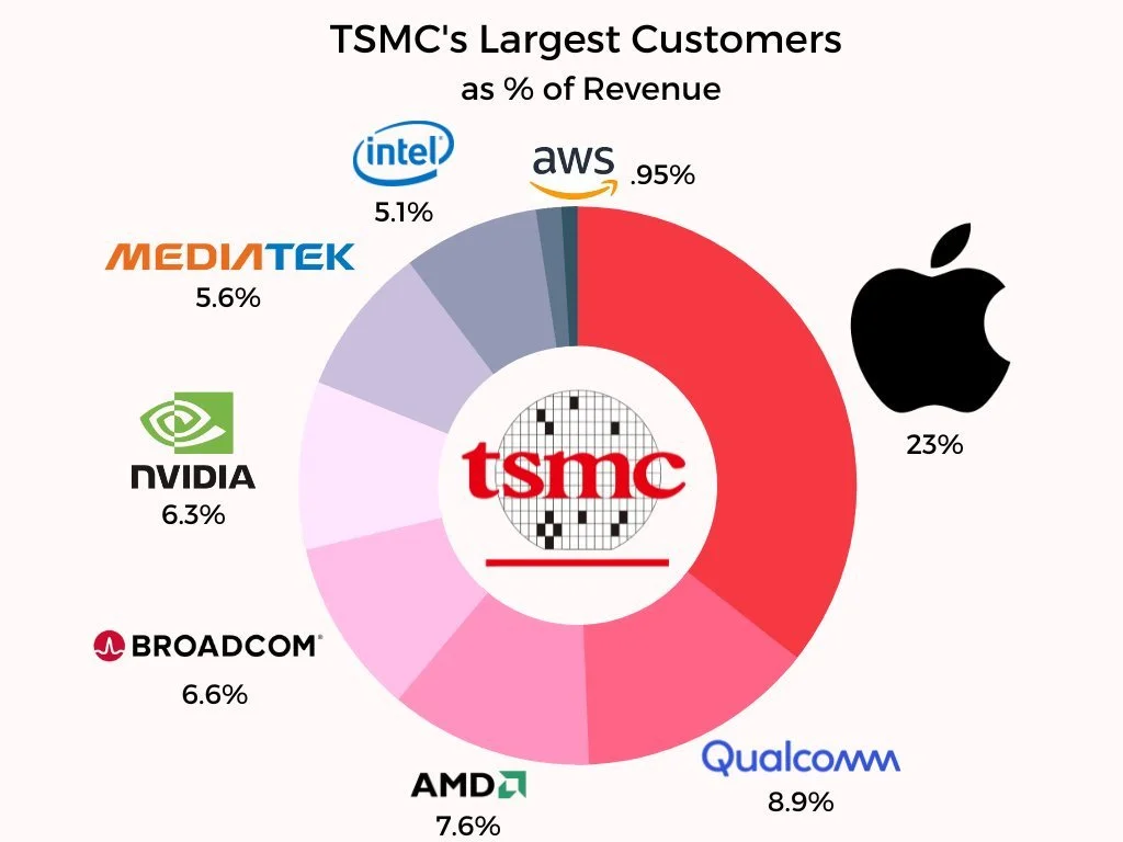 It builds chips for NVIDIA, AMD, Apple, Qualcomm, and increasingly Intel.
